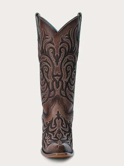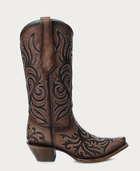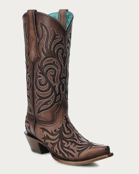 Stivali Western Corral marroni con ricamo scuro